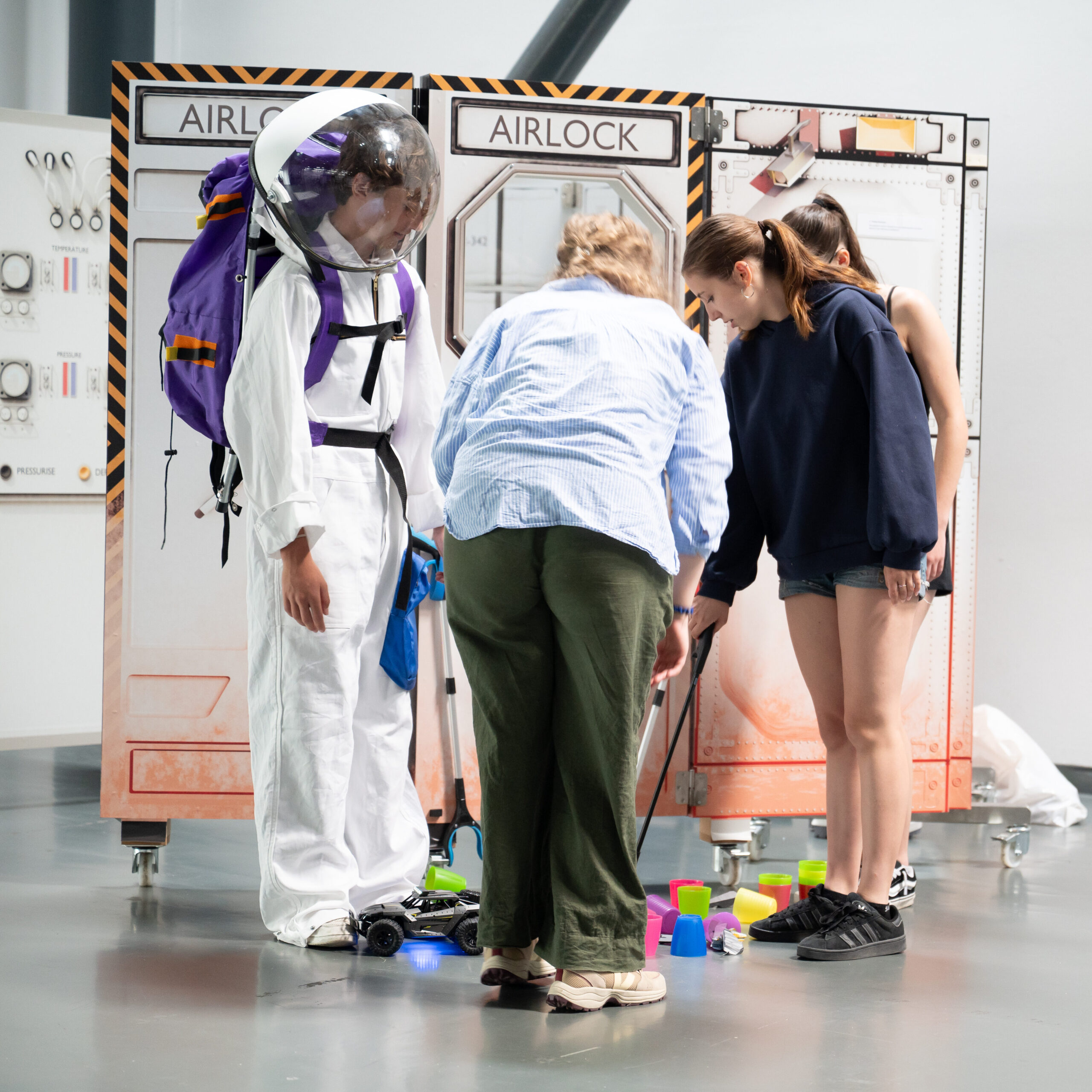 Neben Wissenschaft, Industrie und Politik war auch der Bildungsbereich stark vertreten. ESERO Austria gestaltete mit Unterstützung der ESA und viele weitere Partner ein vielfältiges Bildungs- und Erlebnisprogramm für Schulklassen, Lehrkräfte und interessierte Jugendliche. In Halle X4 boten Workshops, Führungen und ein interaktives Bühnenprogramm für bis zu 2500 Schüler*innen spannende Einblicke in die Welt der Erdbeobachtung.