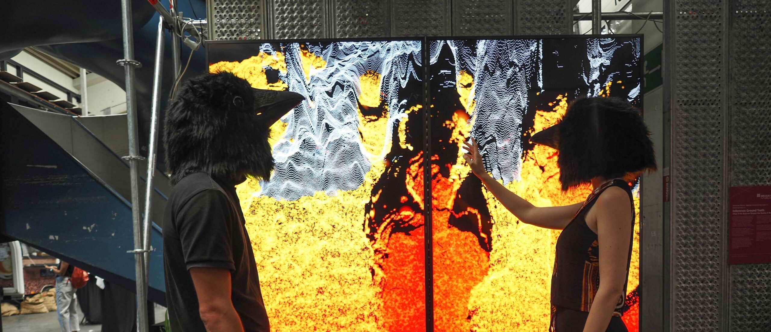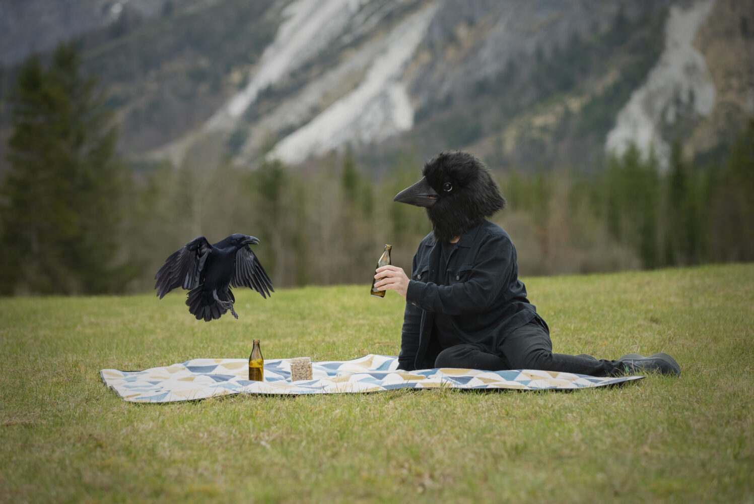 A speculative, interactive interspecies experience immersing visitors in raven communication amid AI, animal intelligence, and human confusion.