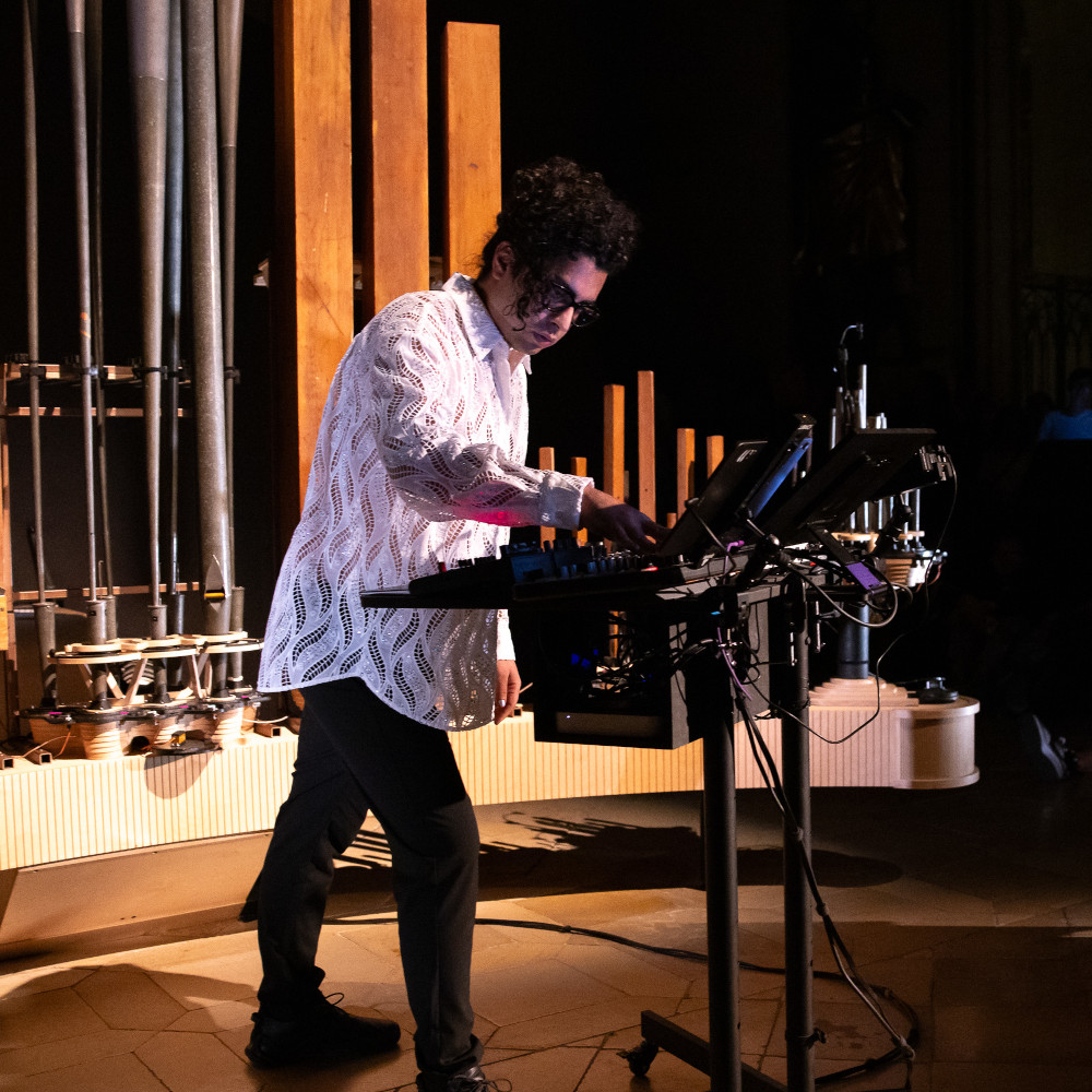 Navid Navab (IR/CA) explores an experimental approach to organ sounds with his performance Organism: In Turbulence, that won the Golden Nica at the 2025 Prix Ars Electronica. Based in Montreal, they challenge conventional ideas of classical church music. The installation will be on display at St. Mary’s Cathedral throughout the festival, with additional performative interventions to look forward to. Meanwhile, the percussion ensemble MOTUS Percussion offers a preview of this year’s Linzer Klangwolke, URBAN PULSE.